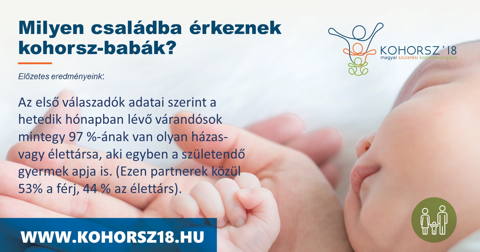 Az első 1000 válaszadó adatai szerint a hetedik hónapban lévő várandósok mintegy 97%-ának van olyan házas- vagy élettársa, aki egyben születendő gyermekének apja is. Az esetek 53 százalékában a partner a kismama férje, 44 százalékában pedig annak élettársa. Ezek az adatok rámutatnak, hogy a teljesen egyedüli, egyszülős gyermekvállalás elterjedtsége továbbra is meglehetősen alacsony Magyarországon. Az egyszülős családok többsége a szülést követően alakul ki, a házasságon kívüli gyermekvállalások túlnyomó részének hátterében pedig élettársi kapcsolat áll.
